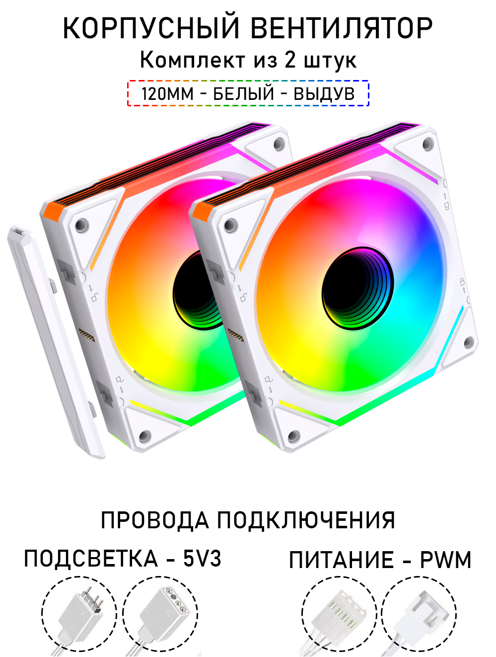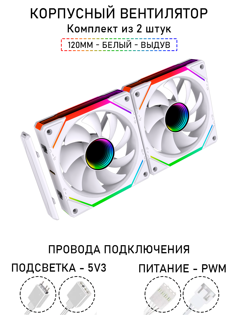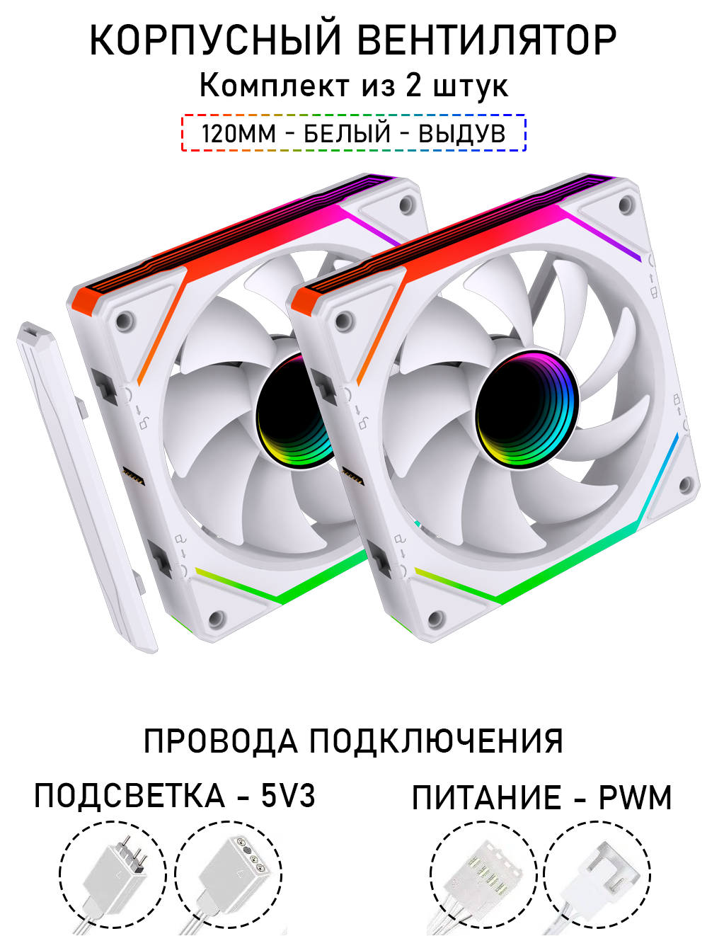 Купить Модульный вентилятор - 5PRO Inline - 120мм, A-RGB, PWM+5v3, Комплект из 2 штук, белый, на выдув из корпуса