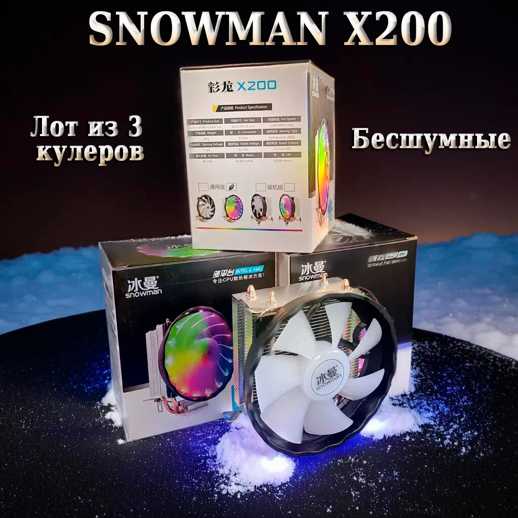 Лот кулер для процессора Snowman X200 вентилятор с подсветкой - 3шт интересное: