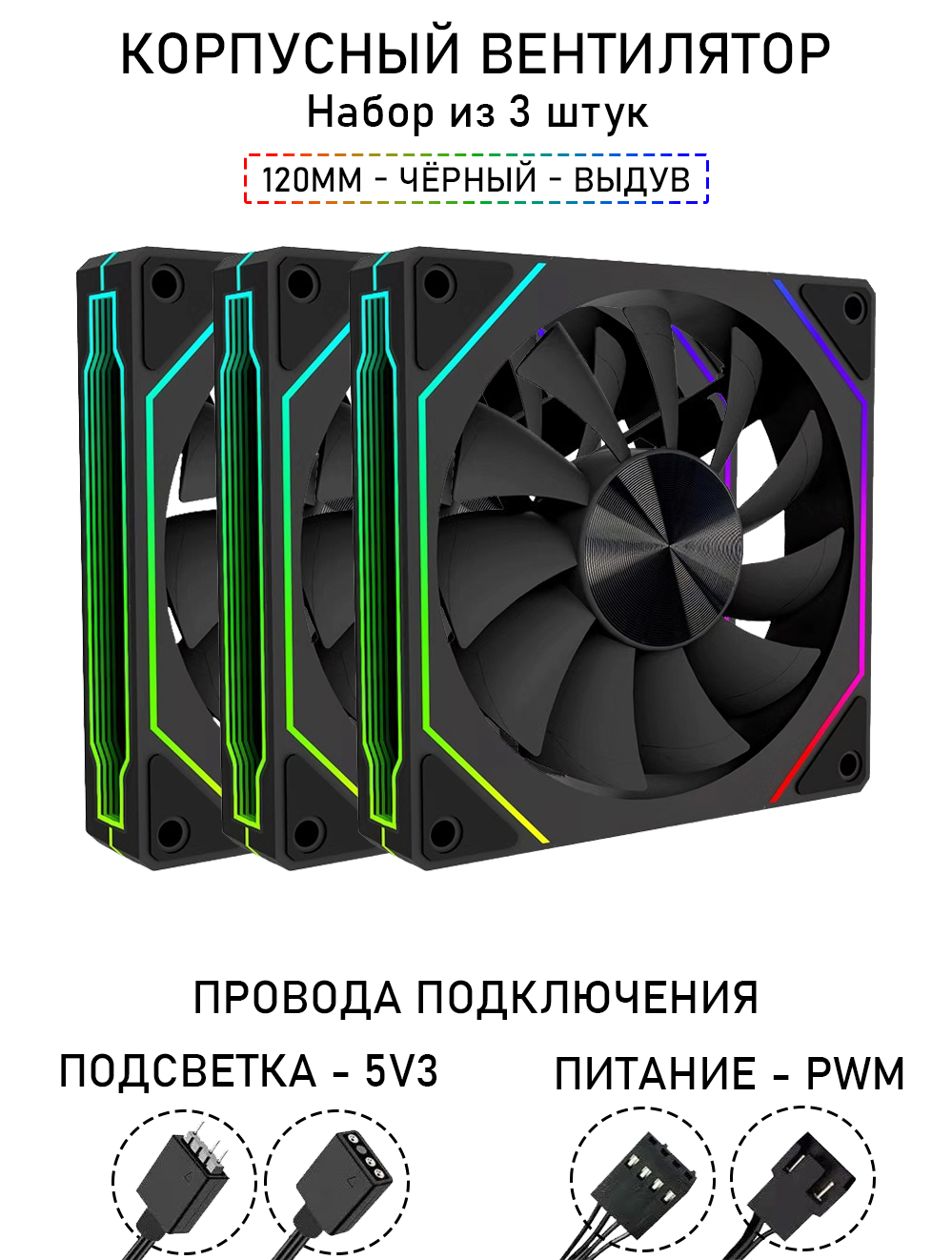 Купить Вентилятор для корпуса LovingCool - 4RS, набор из 3 штук, 120мм, чёрный, выдув, A-RGB, PWM + 5v3