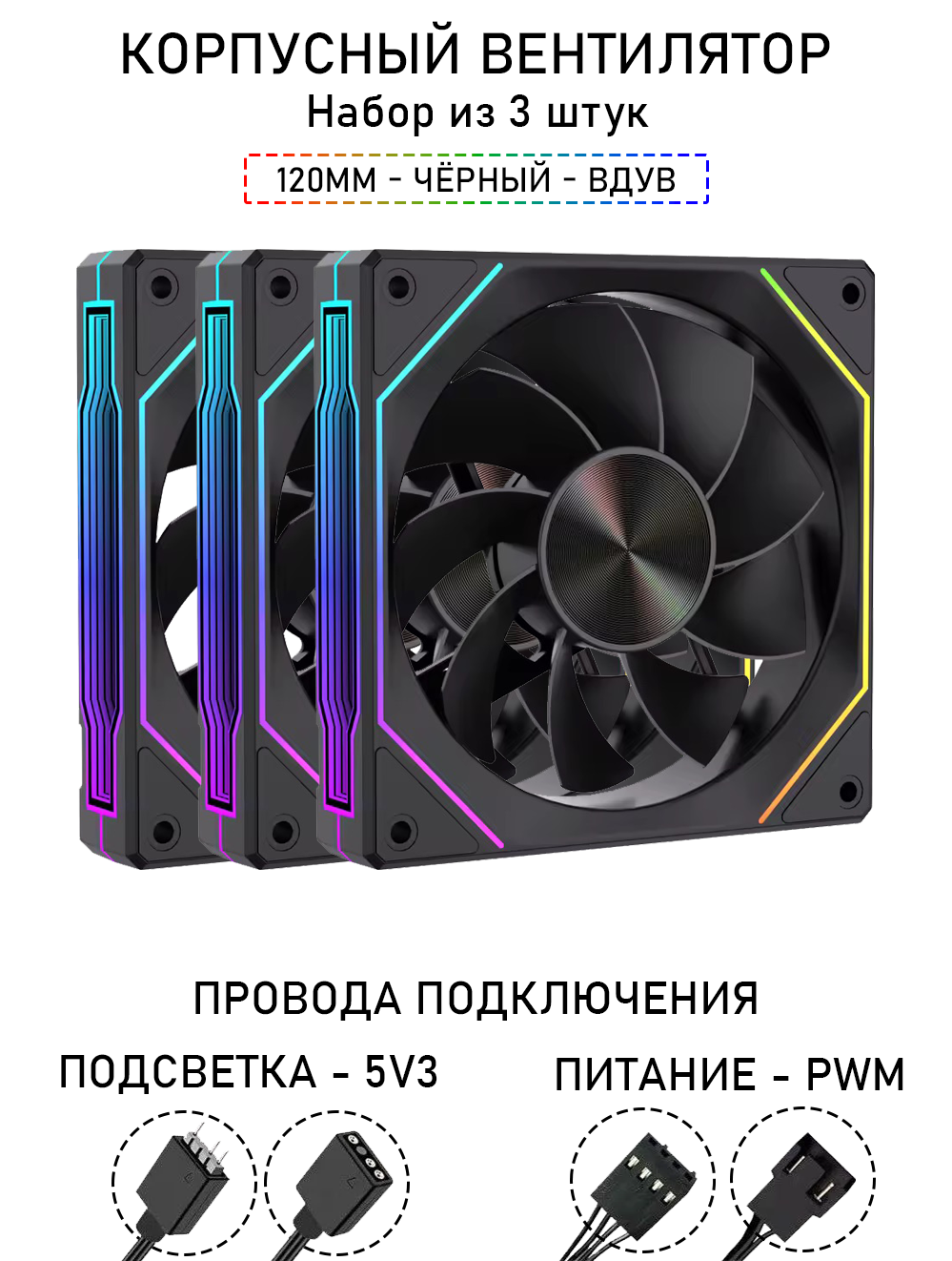 Вентилятор для корпуса LovingCool - 4RS, набор из 3 штук, 120мм, чёрный, выдув, A-RGB, PWM + 5v3