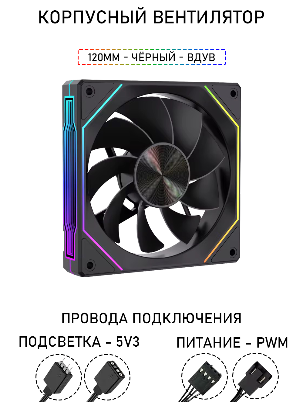 Вентилятор для корпуса LovingCool - 4RS, 120мм, чёрный, выдув, A-RGB, PWM + 5v3