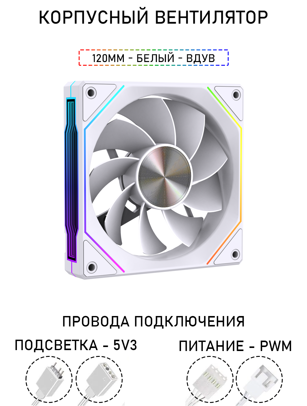 Вентилятор для корпуса LovingCool - 4RS, 120мм, белый, выдув, A-RGB, PWM + 5v3