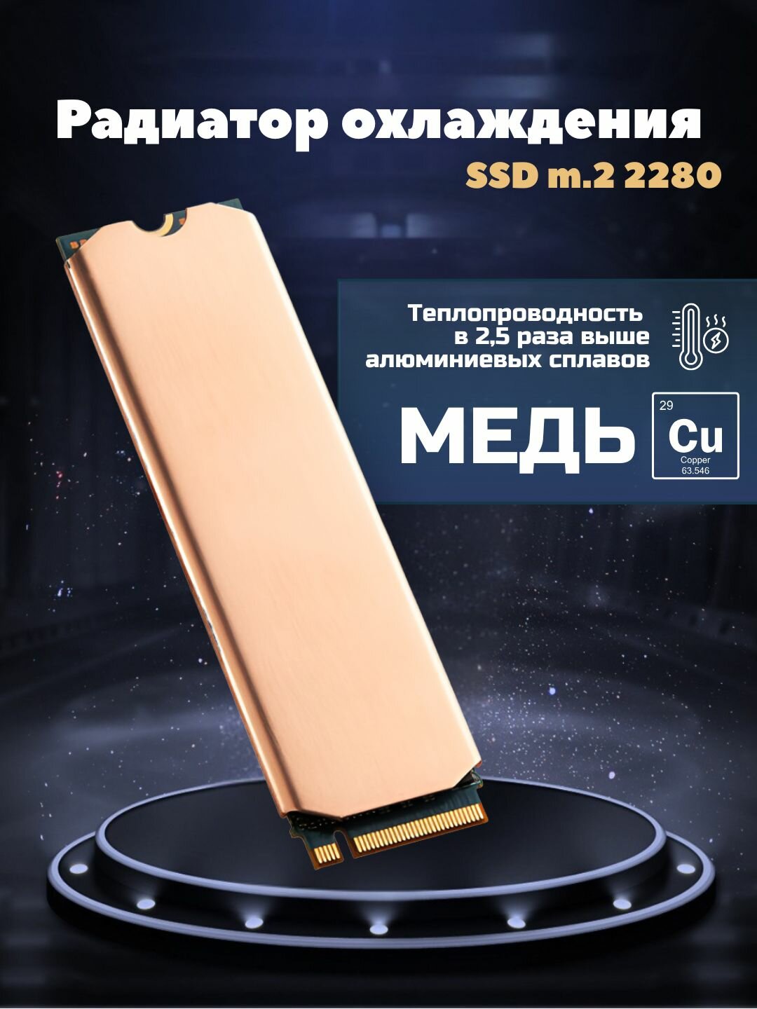 Радиатор для охлаждения SSD M2 медный, размер 70 мм на 22 мм интересное: