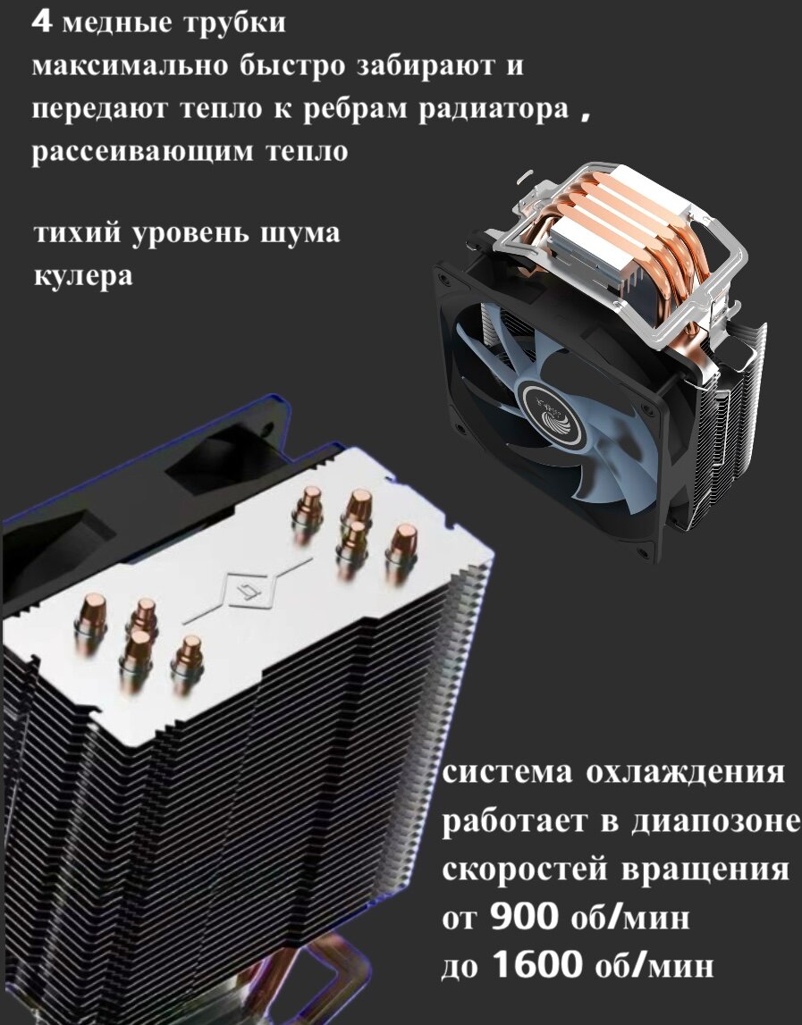 Кулер для процессора башня 4 тепловые трубки и вентилятор 120мм с подсветкой fRGB интересное: