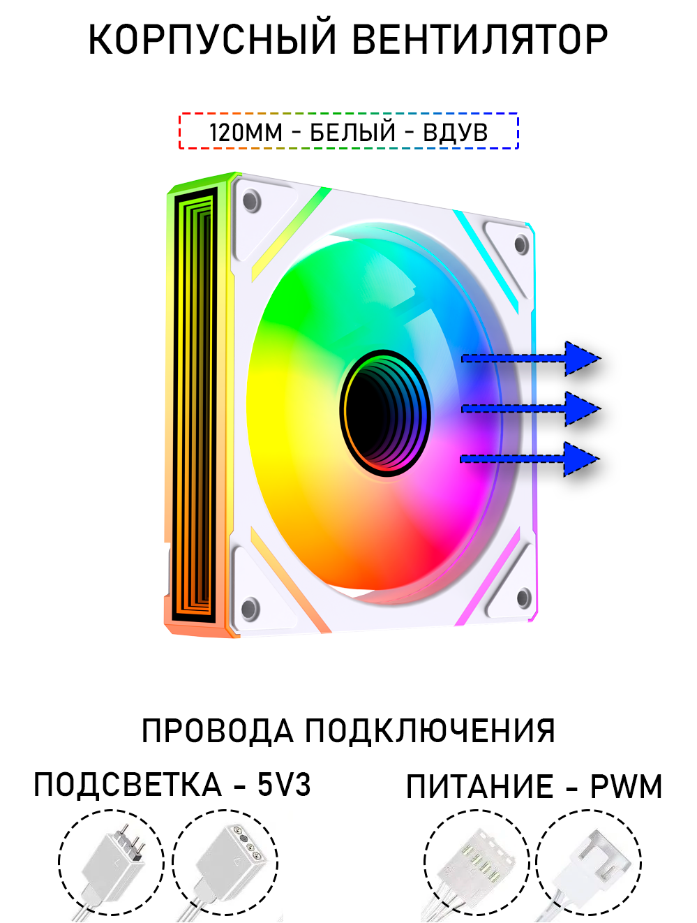 Вентилятор для корпуса LovingCool - 7PRO, набор из 2штук 120мм, белый, выдув, A-RGB, PWM + 5v3