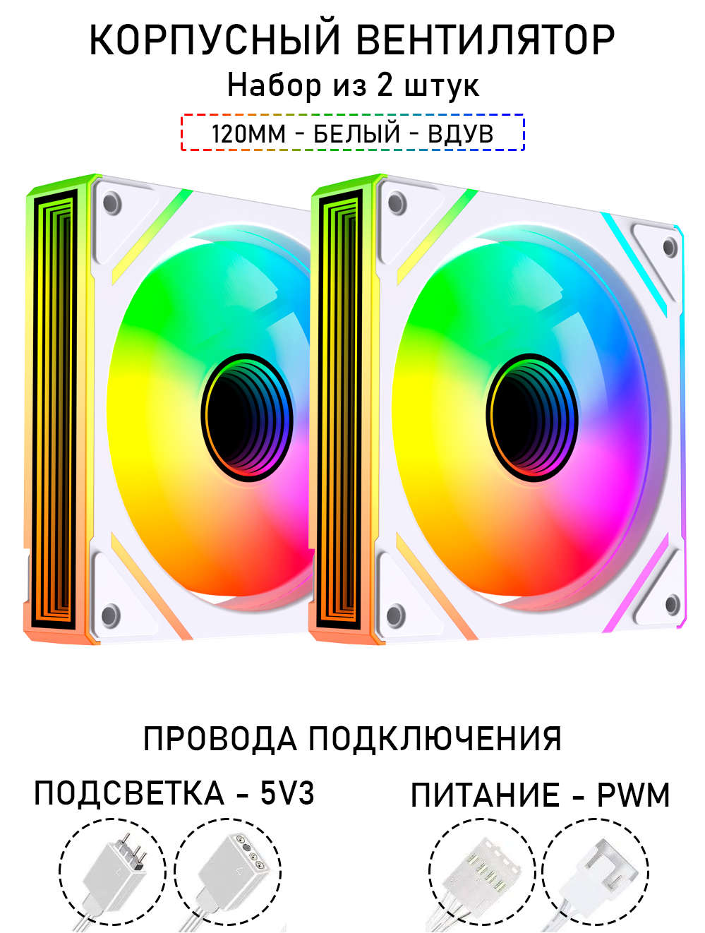 Вентилятор для корпуса LovingCool - 7PRO, набор из 2штук 120мм, белый, выдув, A-RGB, PWM + 5v3
