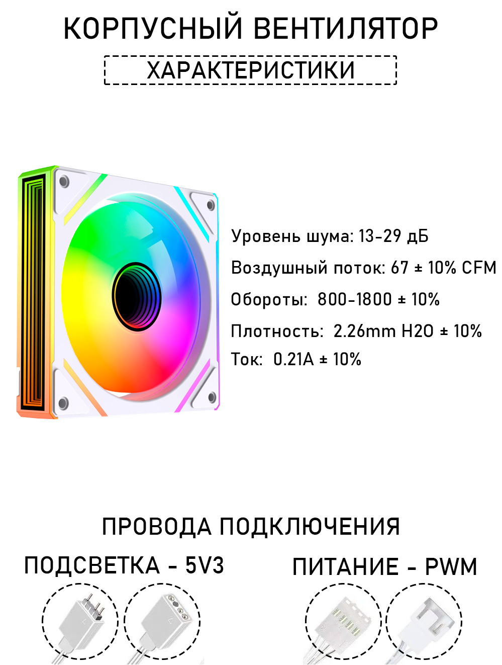 Вентилятор для корпуса LovingCool - 7PRO, набор из 2штук 120мм, белый, выдув, A-RGB, PWM + 5v3