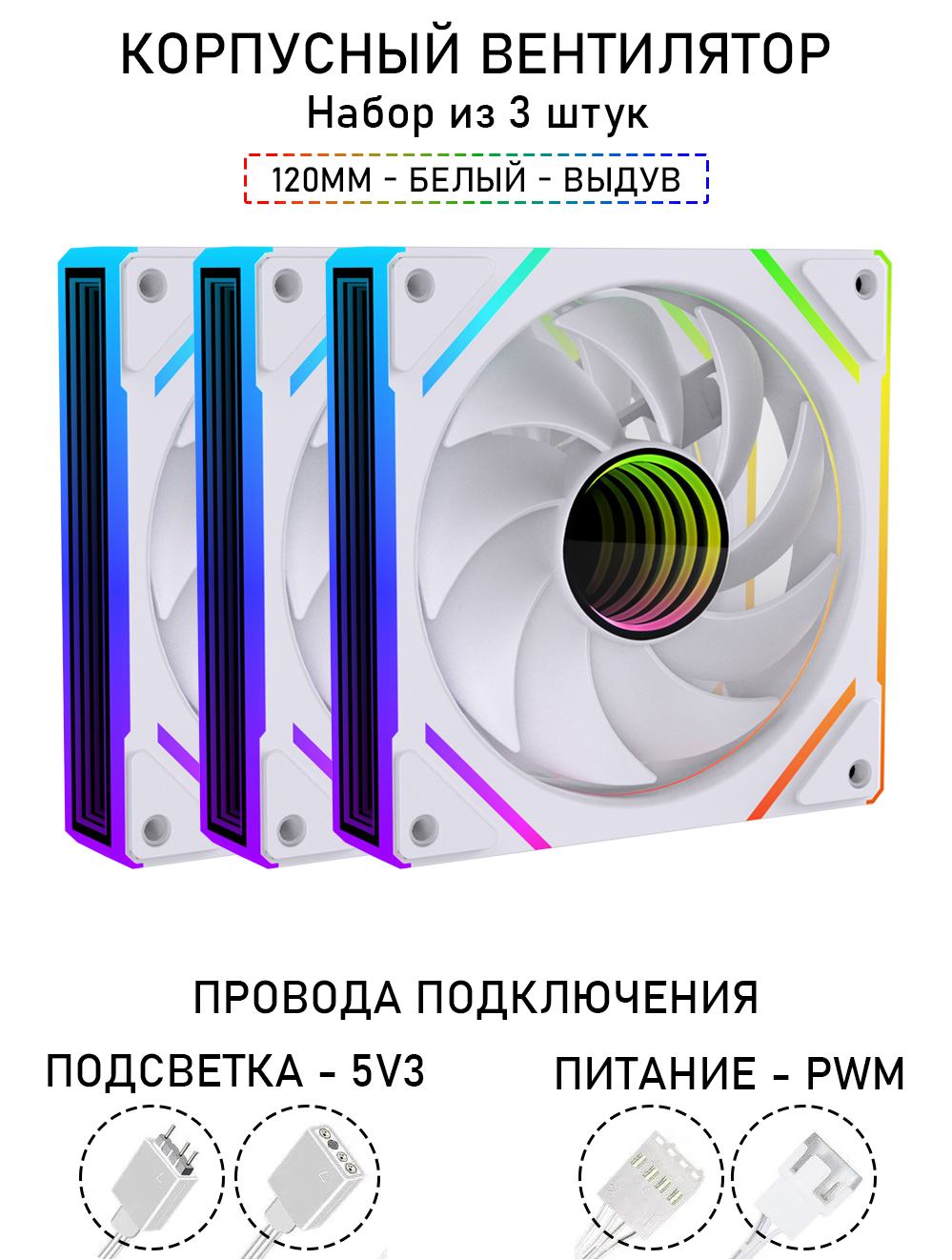 Купить Вентилятор для корпуса LovingCool - 7PRO, набор из 3штук 120мм, белый, выдув, A-RGB, PWM + 5v3