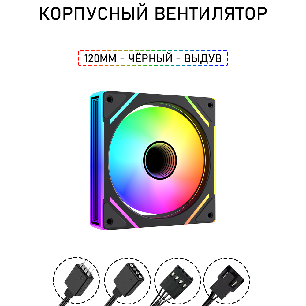 Вентилятор для корпуса LovingCool - 7PRO, 120мм, чёрный, вдув, A-RGB, PWM + 5v3