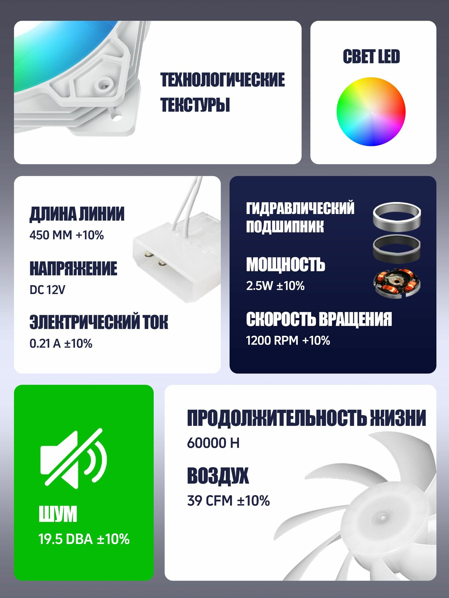 Вентилятор для корпуса компьютера *5 шт, RGB вентилятор для корпуса 120х120мм интересное: