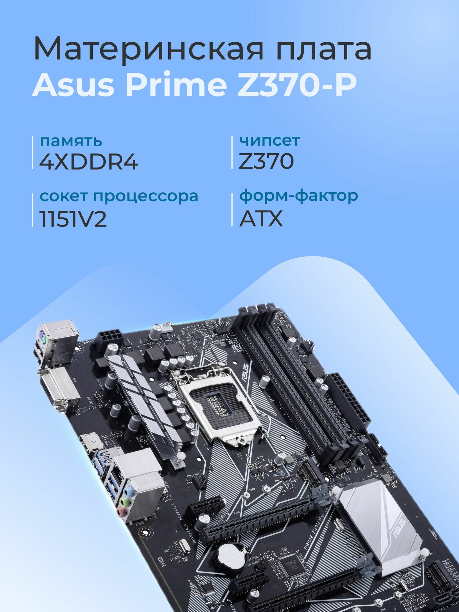Купить Материнская плата ASUS PRIME Z370-P, LGA1151v2, DDR4, 2 разъема M.2, 4 слота RAM