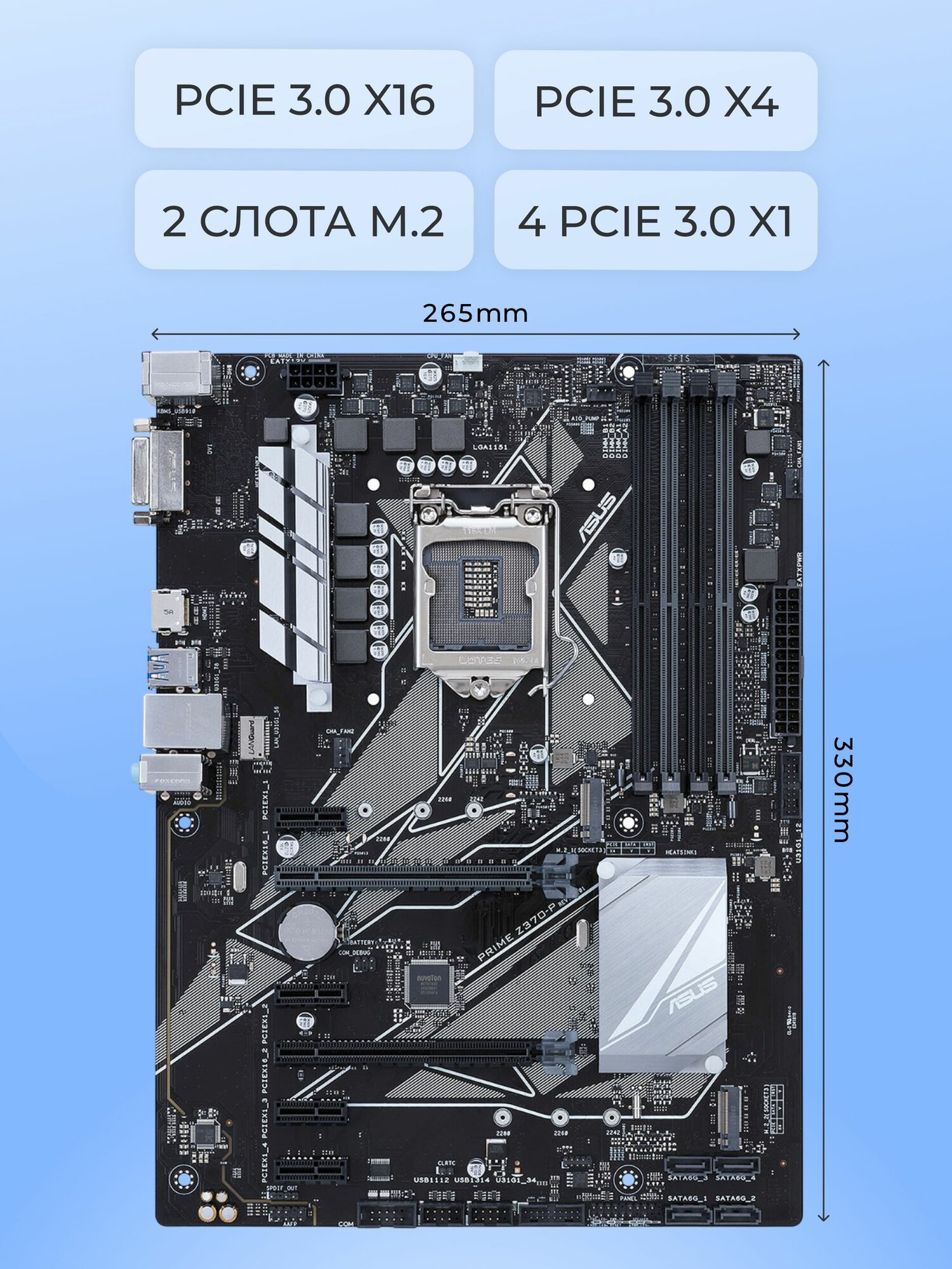 Материнская плата ASUS PRIME Z370-P, LGA1151v2, DDR4, 2 разъема M.2, 4 слота RAM интересное: