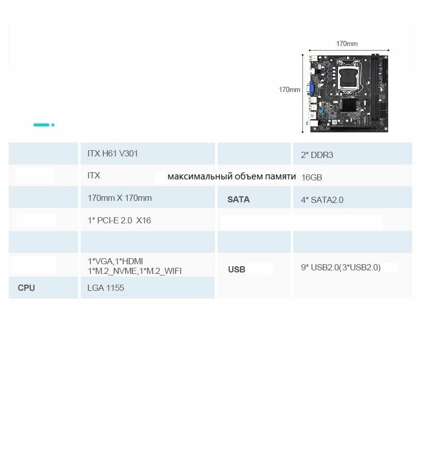 Материнская плата Mini ITX H61 V301, DDR3 до 16 ГБ, LGA1155, для Core i3/i5/i7 интересное: