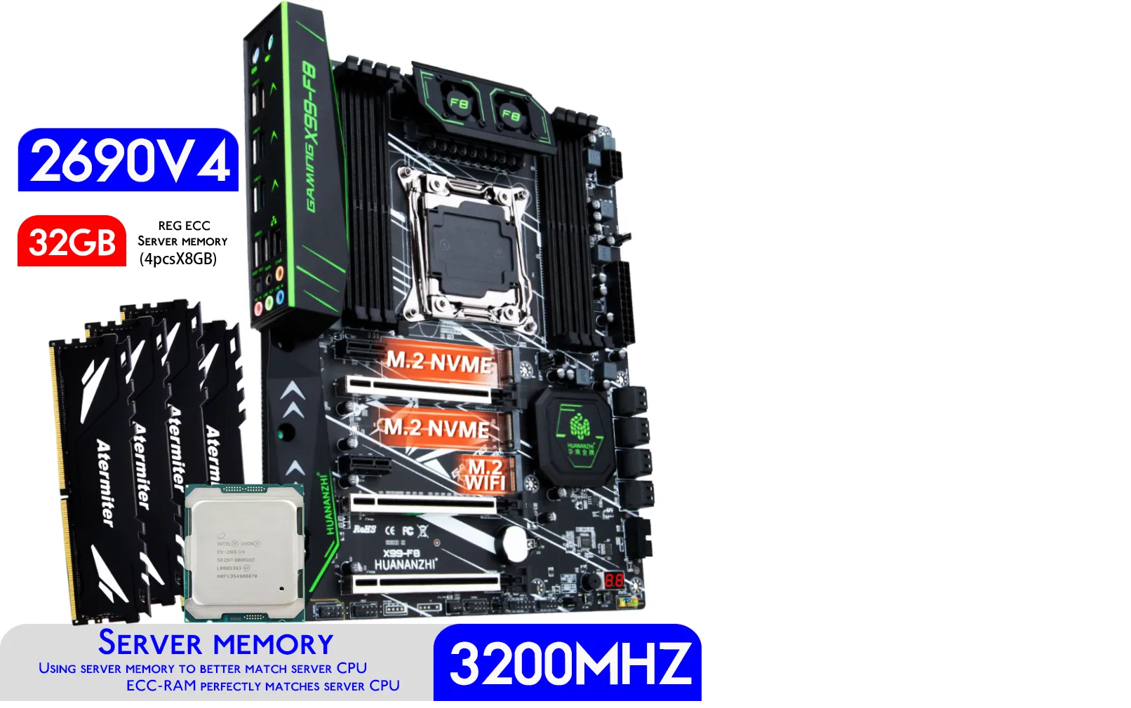 Комплект: XEON E5-2690v.4+ DDR4 32GB (4x8GB) 3200mgz REG ECC+ HUANANZHI F8 X99 LGA2011 интересное: