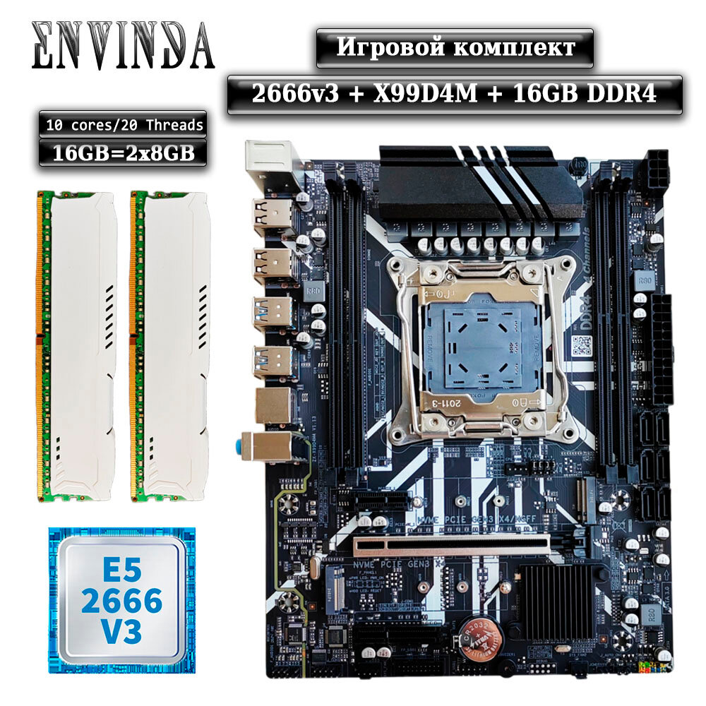 Купить Комплект материнская плата Envinda X99 + Xeon 2666V3 + 16GB DDR4 ECC 2x8GB White