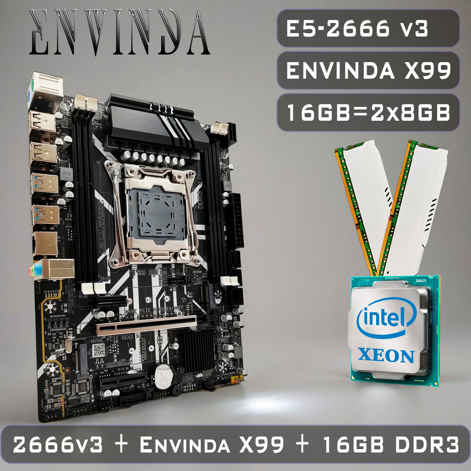 Купить Комплект материнская плата Envinda X99 + Xeon 2666V3 + 16GB DDR3 ECC 2x8GB White