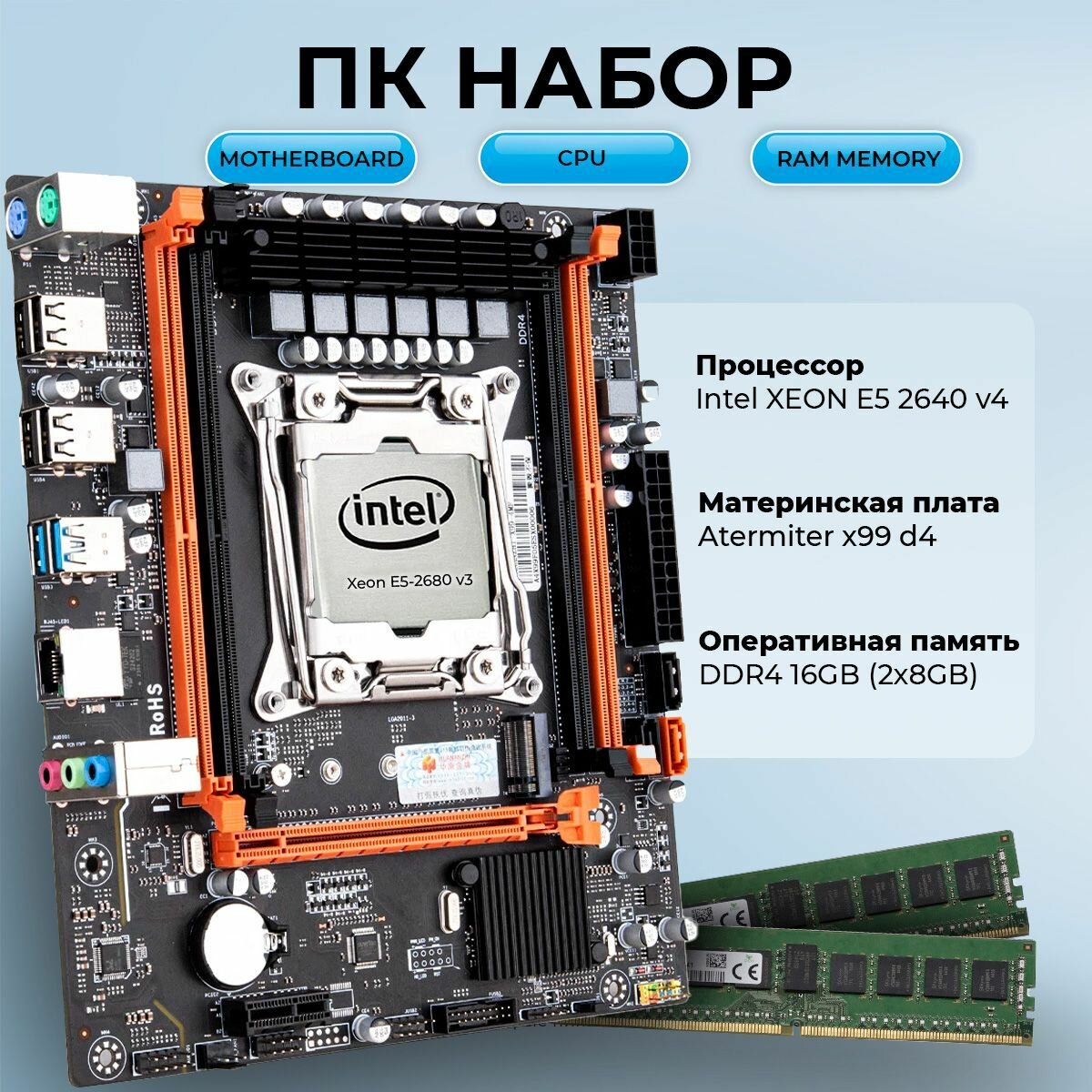 Купить Комплект для Пк Материнская плата Atermiter x99 d4 с процессором Xeon E5 2640v4 и оперативной памятью на 16 gb(2x8gb) DDR4
