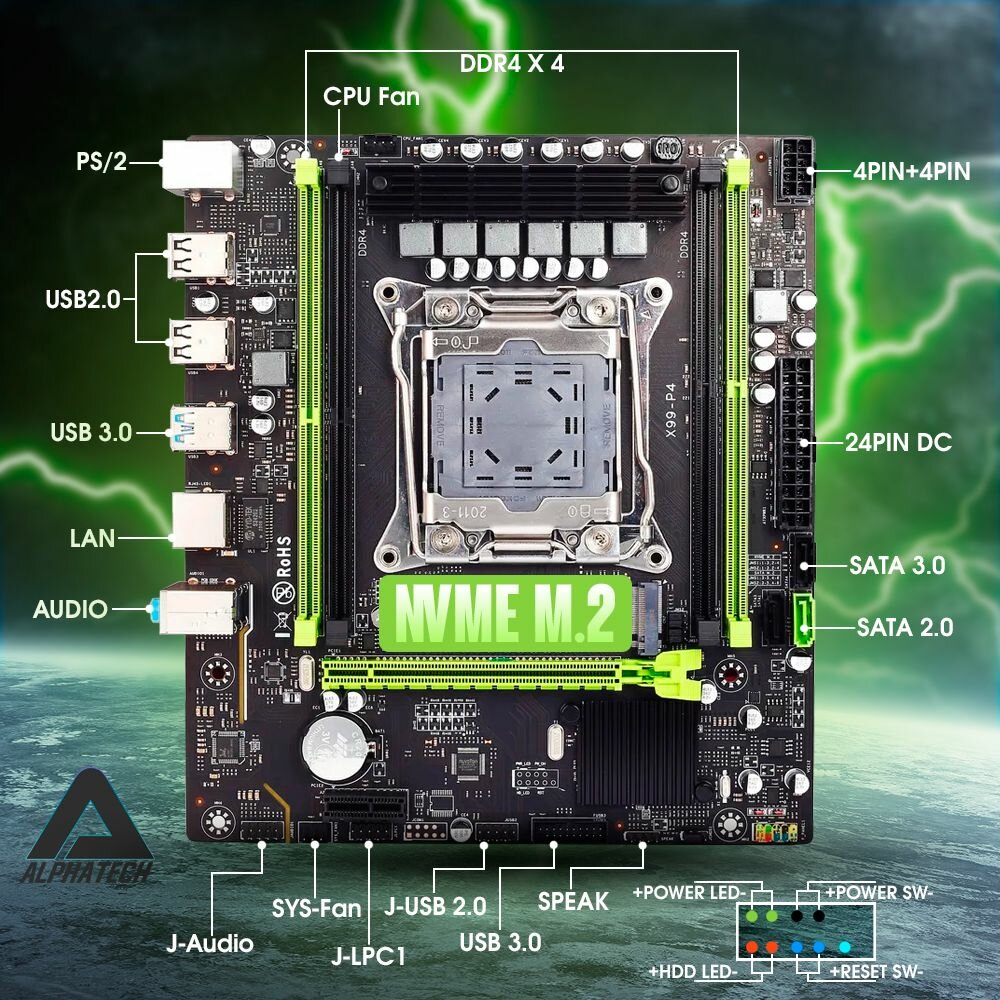 Материнская плата Atermiter X99 P4, LGA 2011v3 (NVME M.2 SSD, DDR4 ECC REG RAM) интересное: