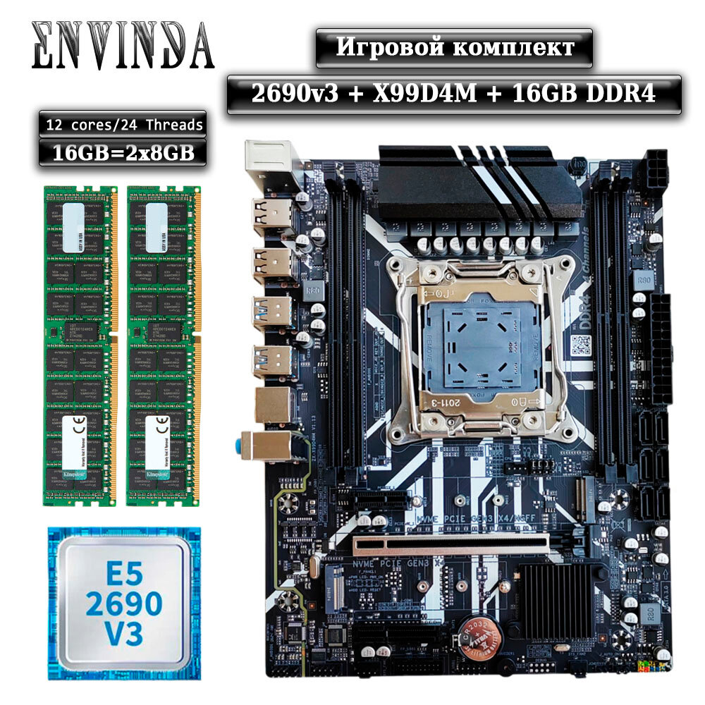 Купить Комплект материнская плата Envinda X99 + Xeon 2690V3 + 16GB DDR4 ECC