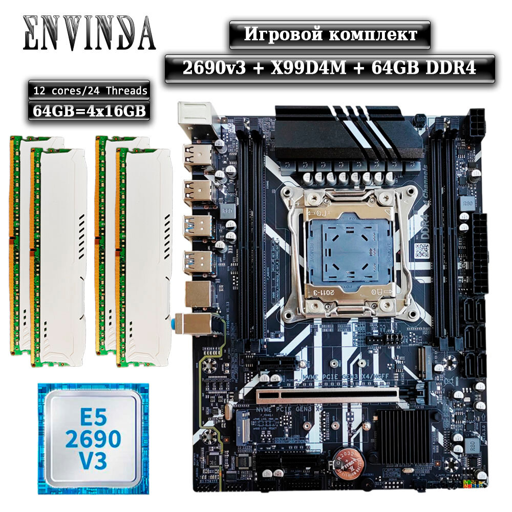 Купить Комплект материнская плата Envinda X99 + Xeon 2690V3 + 64GB DDR4 ECC 4x16GB White