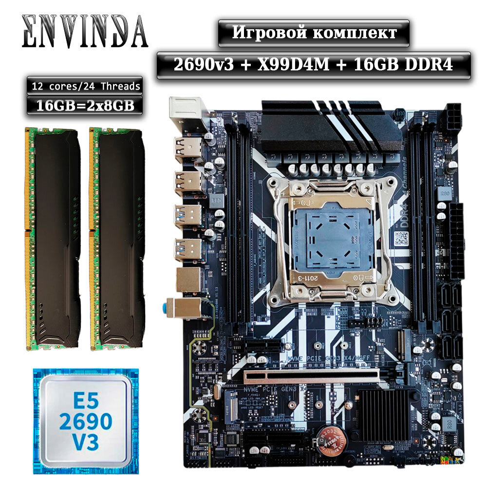 Купить Комплект материнская плата Envinda X99 + Xeon 2690V3 + 16GB DDR4 ECC 2x8GB Black