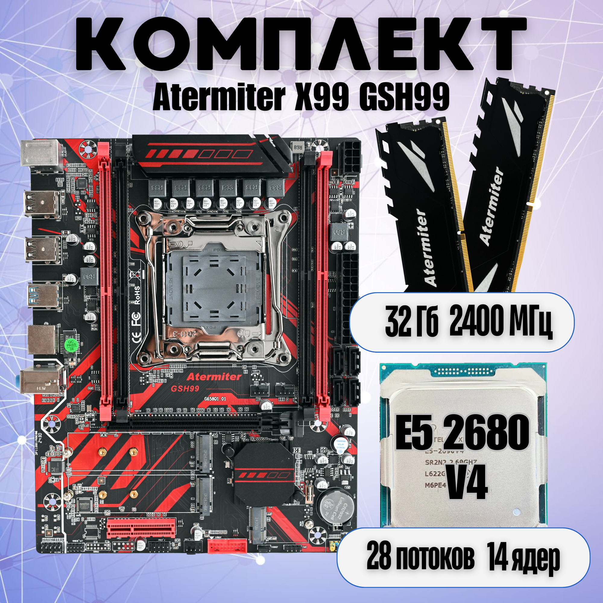 Купить Комплект Atermiter X99 GSH99 + Intel Xeon 2680 v4 + 32 Гб (2x16) 2400 МГц DDR4 REG ECC