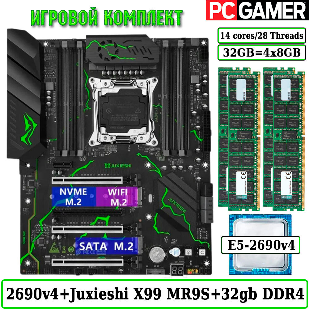 Купить Комплект материнская плата JUXIESHI X99-MR9S + Xeon 2690V4 + 32GB DDR4 ECC REG