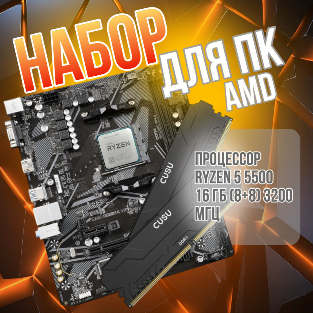 Комплект материнская плата + процессор AMD + ОЗУ. A520, Ryzen 5 5500. 16 гб (8+8) 3200 МГц интересное: