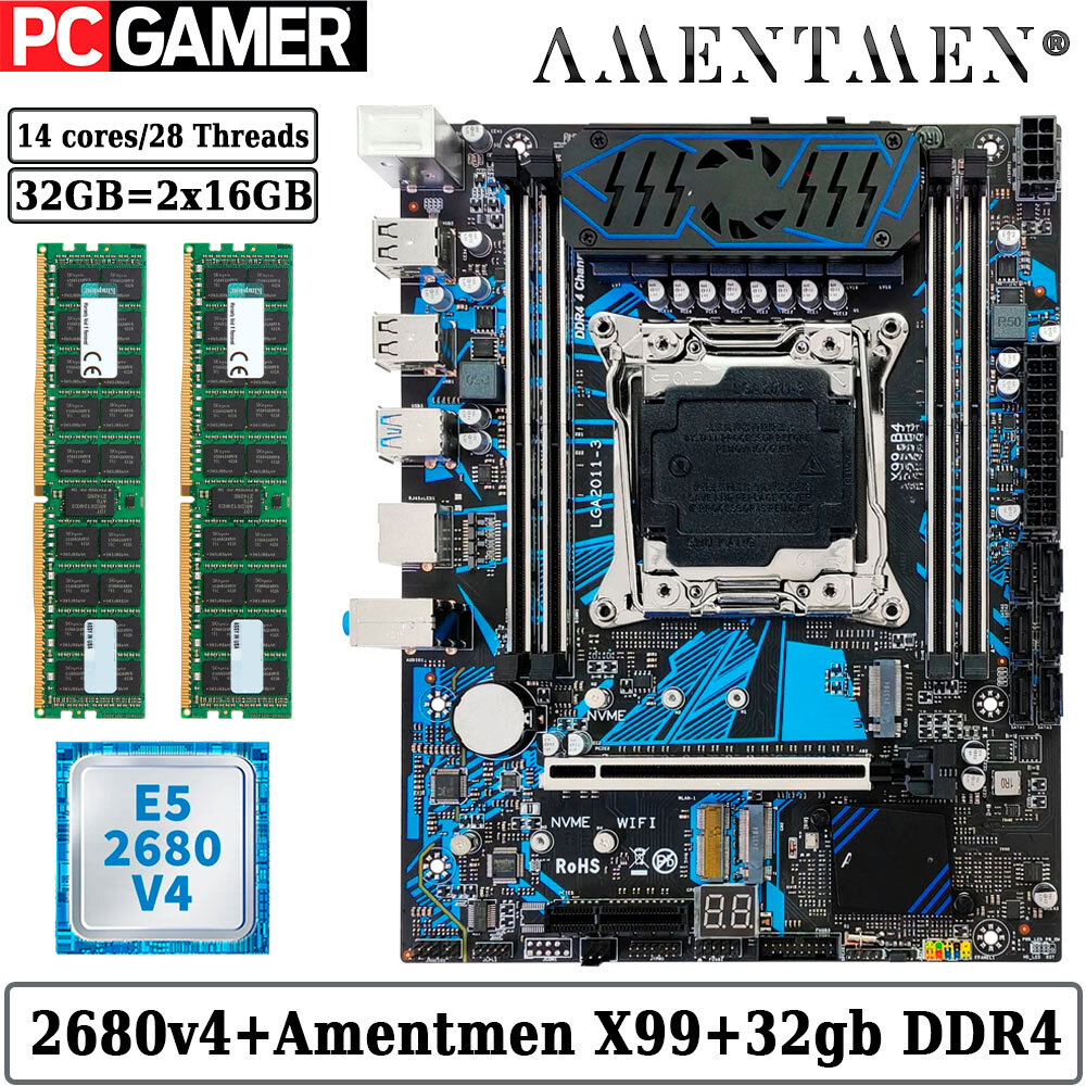 Купить Комплект материнская плата Amentmen X99-B4 + Xeon 2680V4 + 32GB DDR4 ECC REG 2x16GB