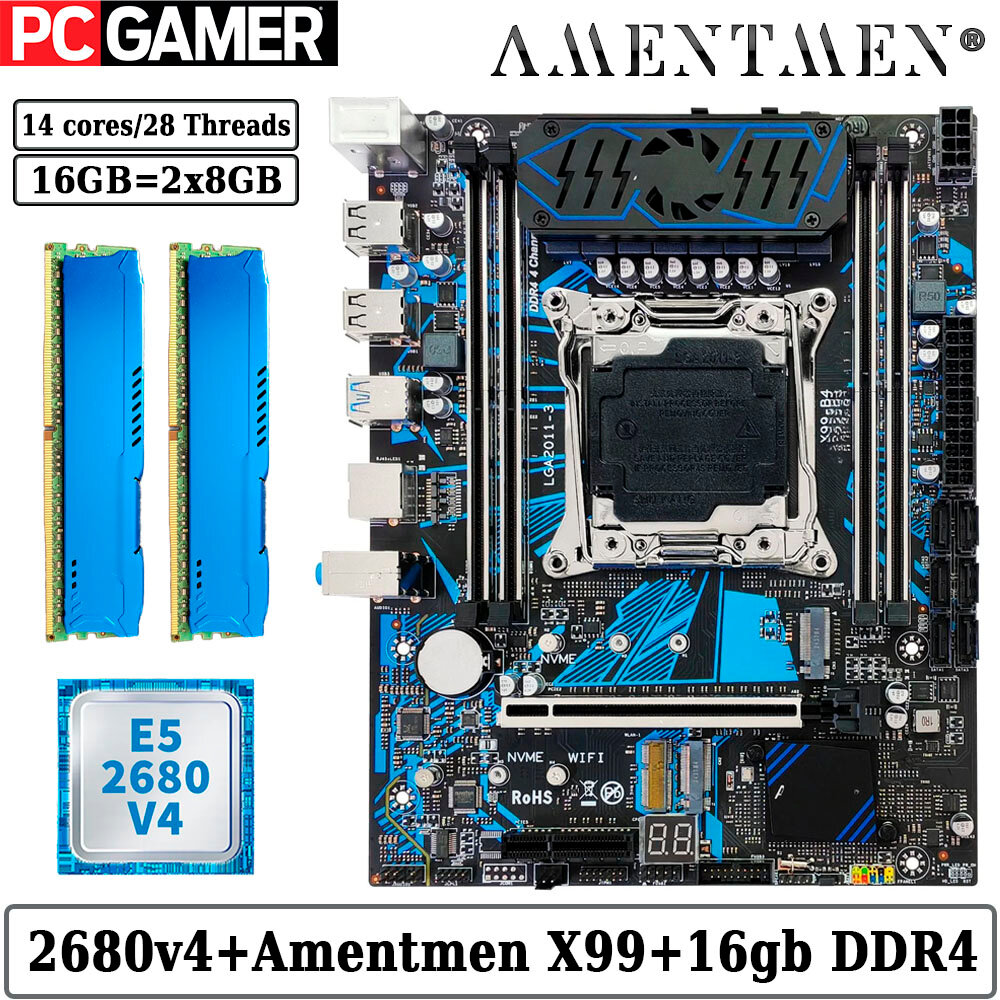 Купить Комплект материнская плата Amentmen X99-B4 + Xeon 2680V4 + 16GB DDR4 ECC REG 2x8GB Blue