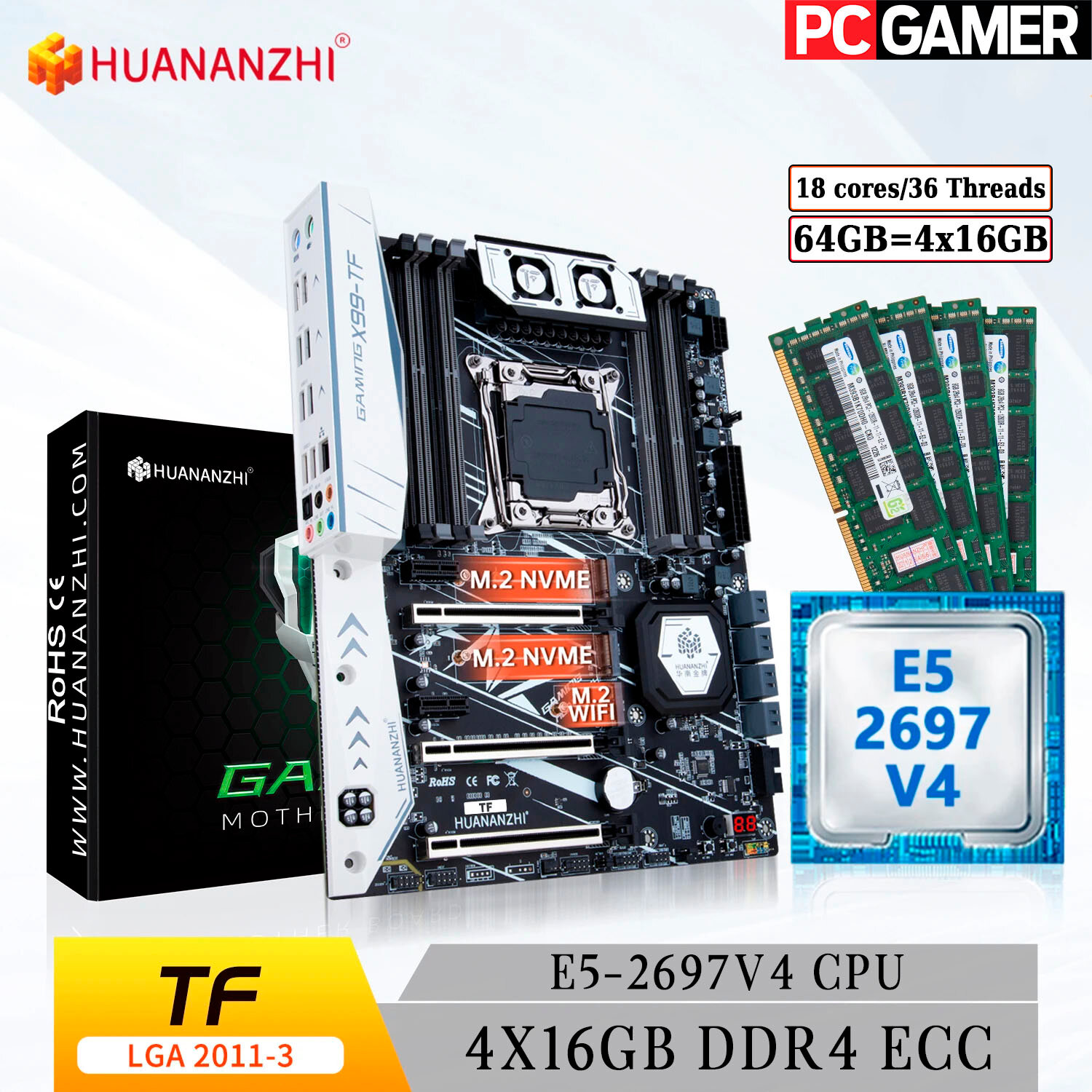 Комплект материнская плата Huananzhi X99-TF + Xeon 2697V4 + 64GB DDR4 ECC 4x16GB White