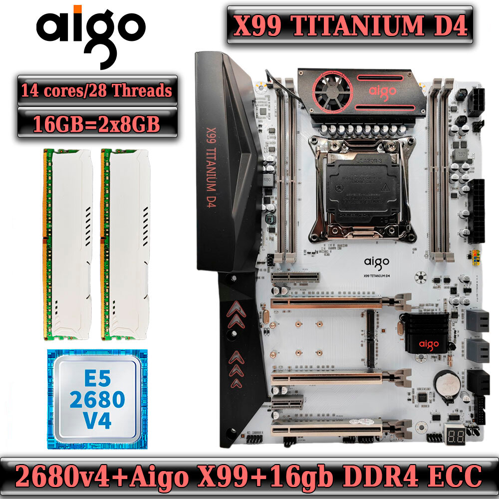Комплект материнская плата Aigo X99 Titanium D4 + Xeon 2680V4 + 16GB DDR4 ECC 2X8GB