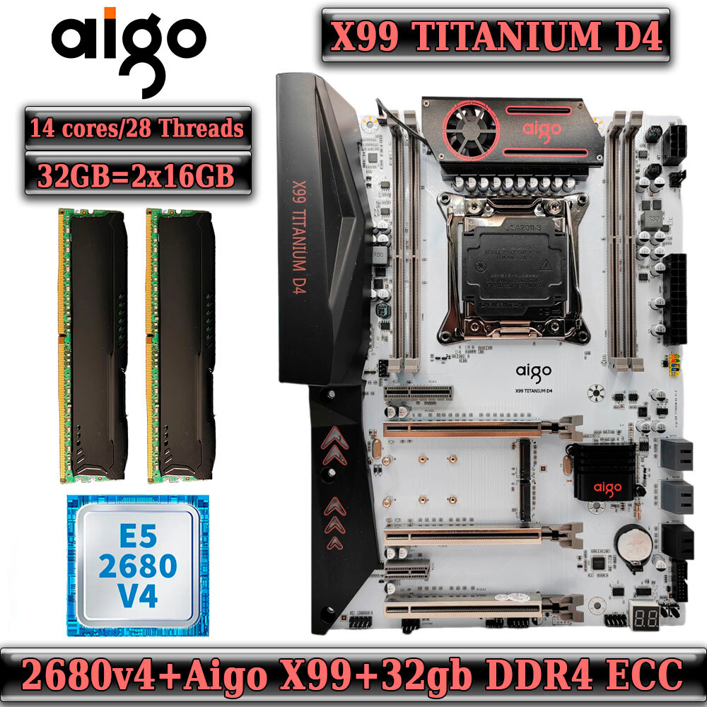 Комплект материнская плата Aigo X99 Titanium D4 + Xeon 2680V4 + 32GB DDR4 ECC 2X16GB