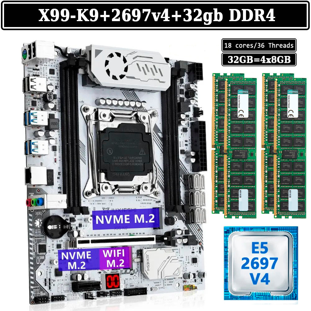 Купить Комплект материнская плата Juxieshi X99-K9 + Xeon 2697V4 + 32GB DDR4 ECC 4x8GB