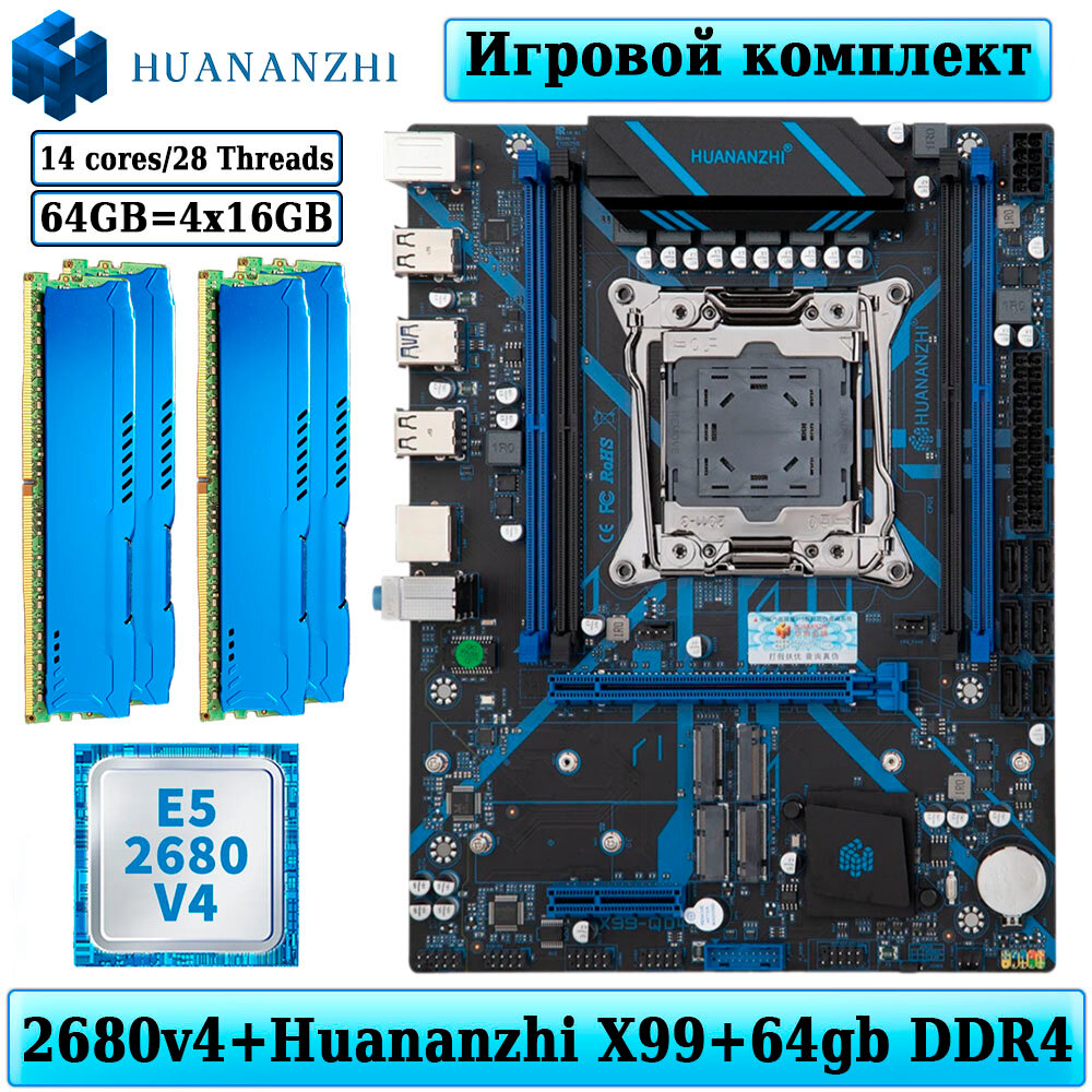 Купить Комплект материнская плата Huananzhi X99-QD4 + Xeon 2680V4 + 64GB DDR4 ECC REG 4x16GB Blue