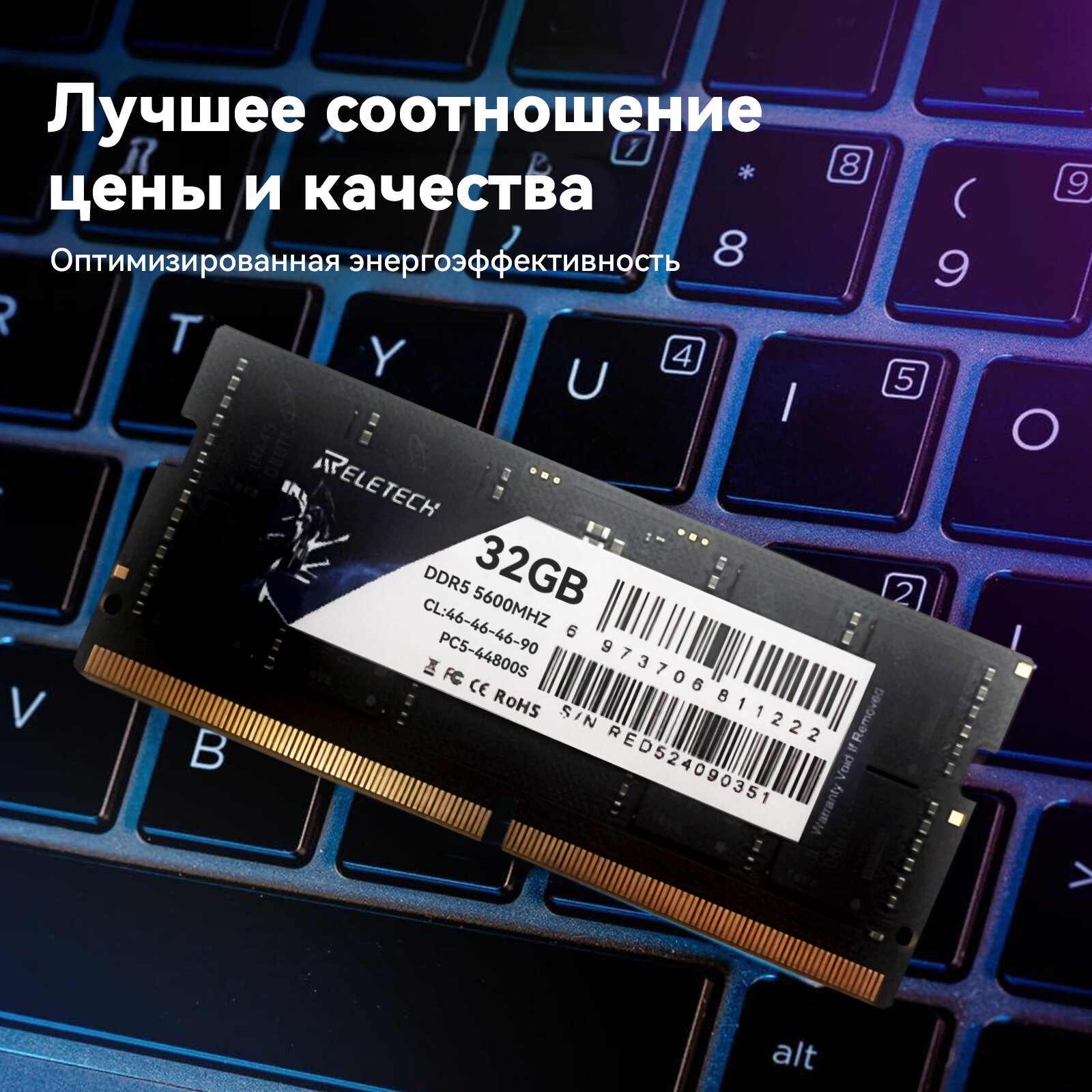 Купить Оперативная память DDR5 32 ГБ 5600MHz CL46 PC5-44800S 1.1V SO-DIMM Для ноутбука, Высокопроизводительная оперативная память Reletech