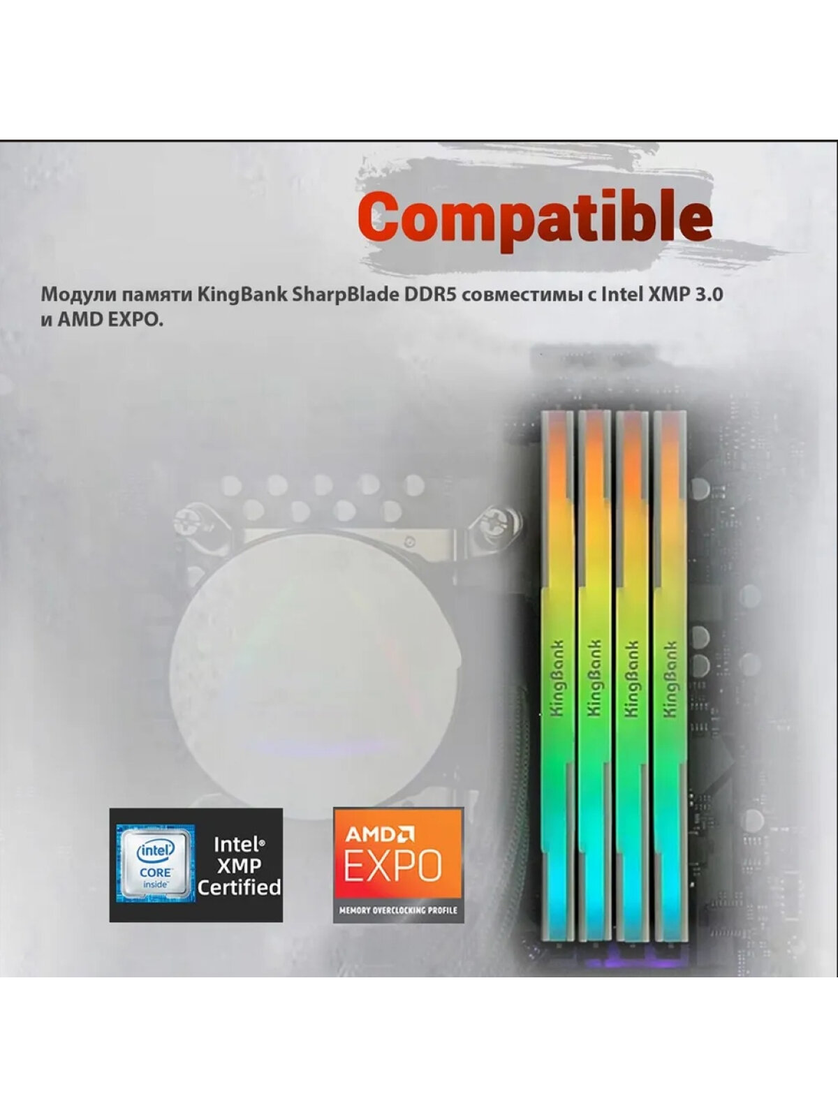 Kingbank Модуль памяти DDR5 6000MHz 2*16GB 32GB UDIMM Heatsink RGB (Hynix A-die c28) интересное:
