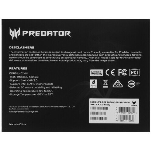 Оперативная память Acer Predator Pallas II [BL.9BWWR.374] 32 ГБ интересное: