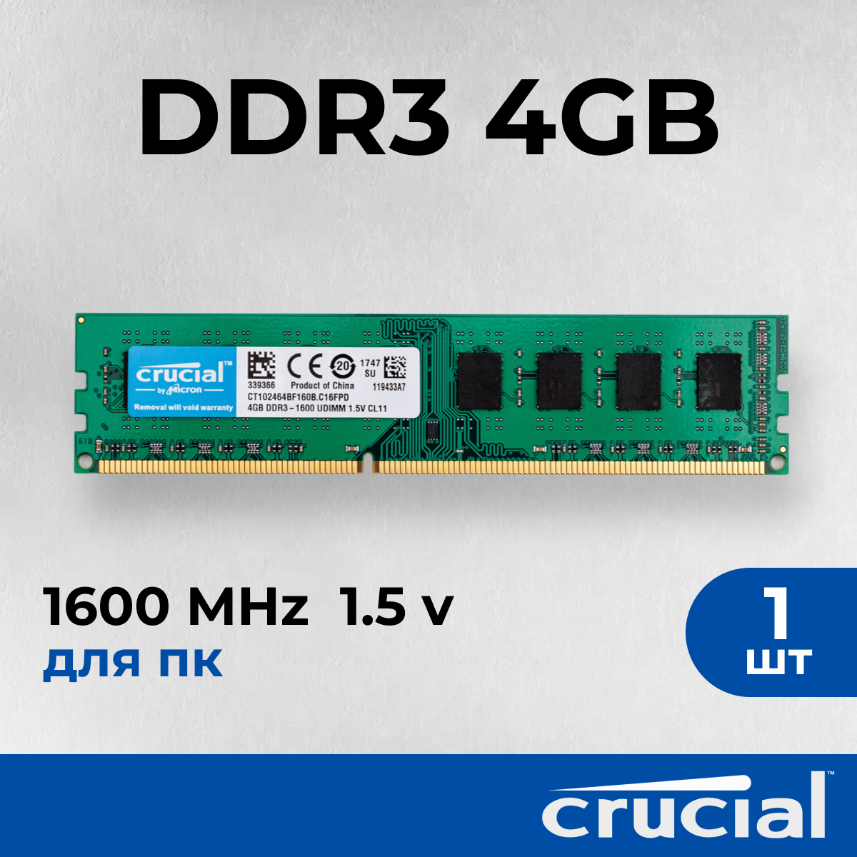 Купить Оперативная память для ПК Crucial DDR3 4 ГБ 1600 МГц 1.5V CL11 DIMM CT102464BF160B
