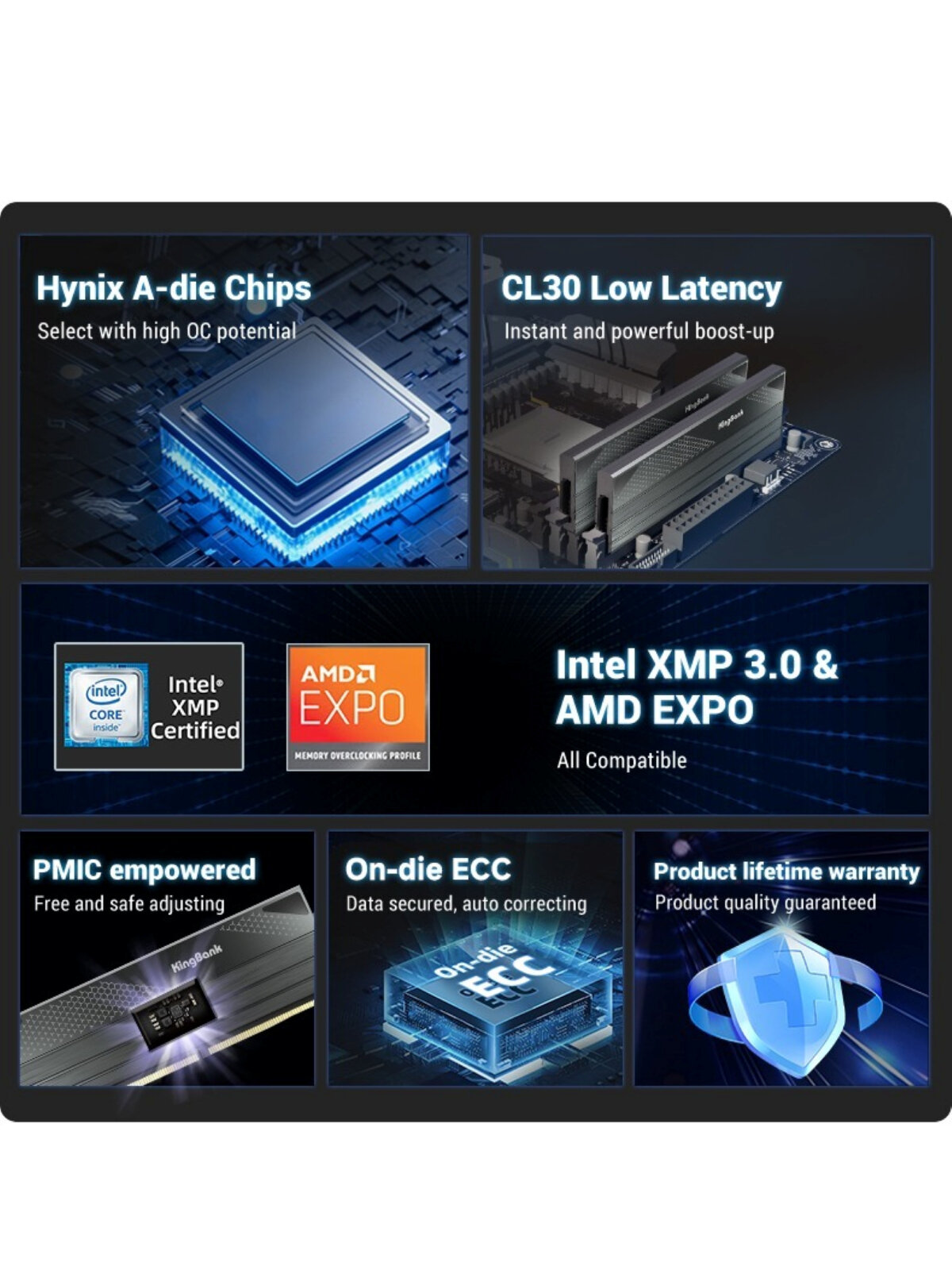 Kingbank Модуль памяти DDR5 6000MHz 2*16GB 32GB UDIMM New Heatsink DRAM (Hynix A-die C28) интересное: