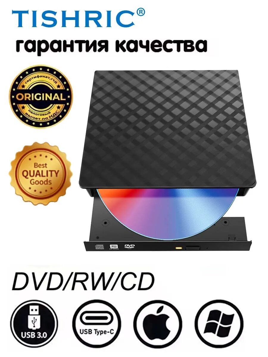 Внешний оптический привод TISHRIC, для DVD/CD дисков, USB 3.0, чёрный интересное:
