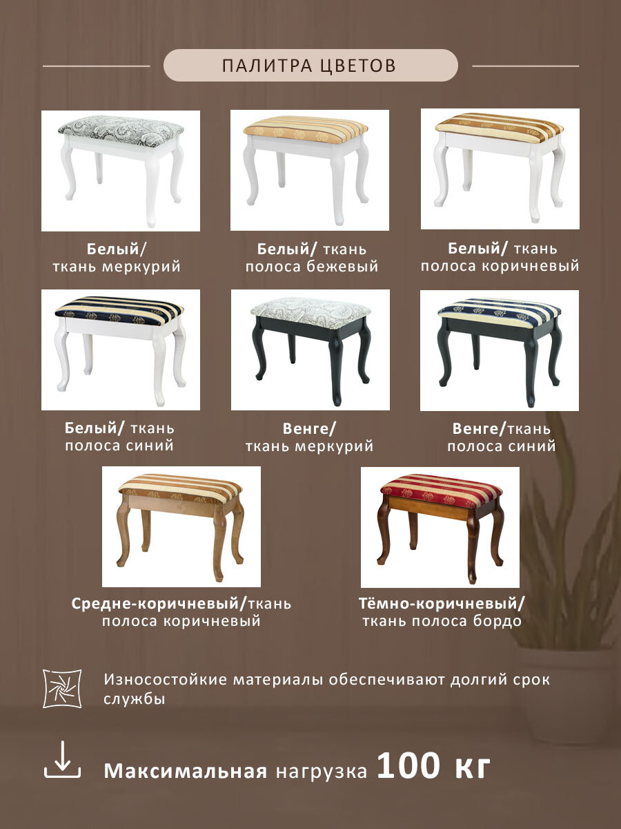 Пуфик банкетка в прихожую Мебелик с сиденьем Ретро с ящиком цвет белый, ткань полоса коричнневая