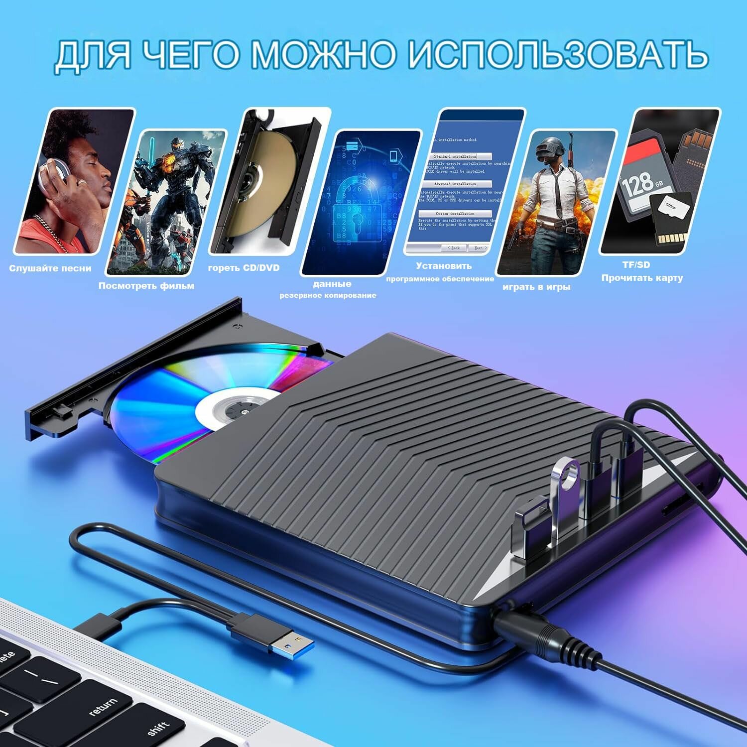 Внешний привод 7-в-1/оптический привод/CD/DVD, тонкий портативный USB 3.0 плеер, совместимый с портативными настольными компьютерами интересное: