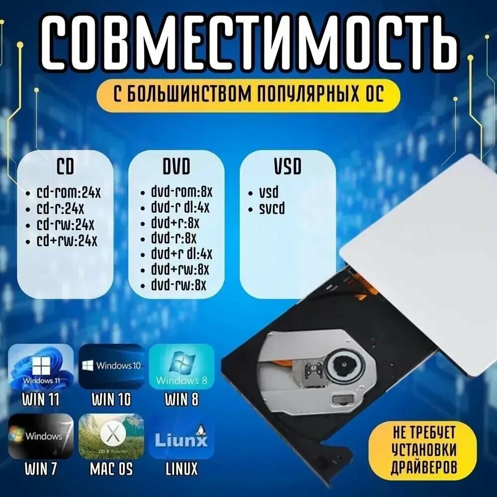 Внешний дисковод для ноутбука, оптический привод компьютера USB 3.0 CD-RW DVD-R интересное: