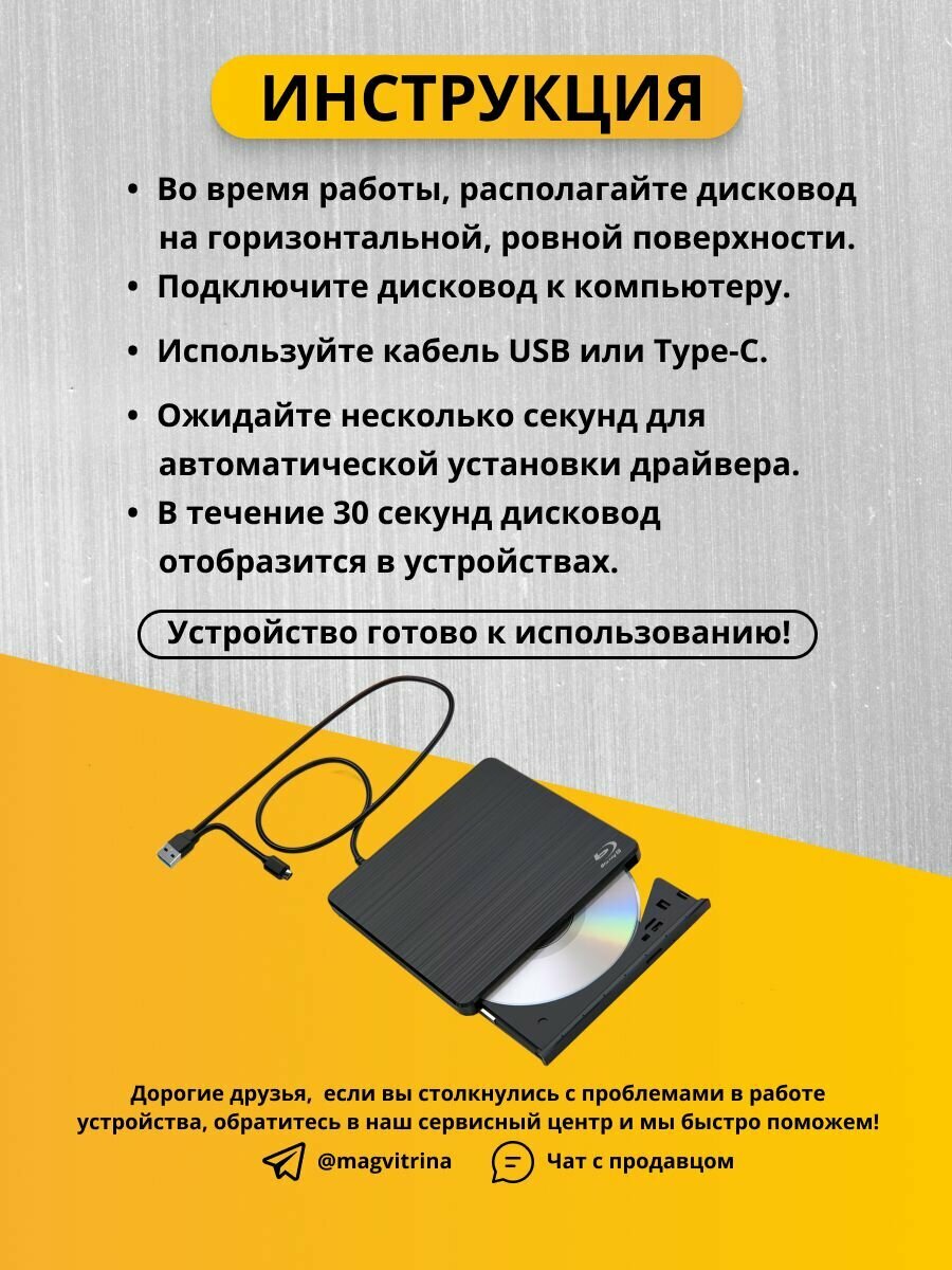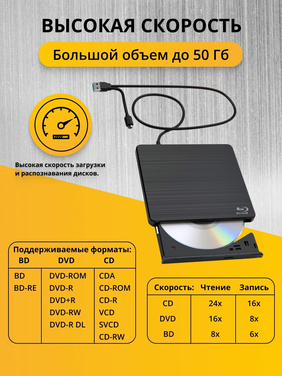 Дисковод внешний для ноутбука DVD CD RW оптический привод