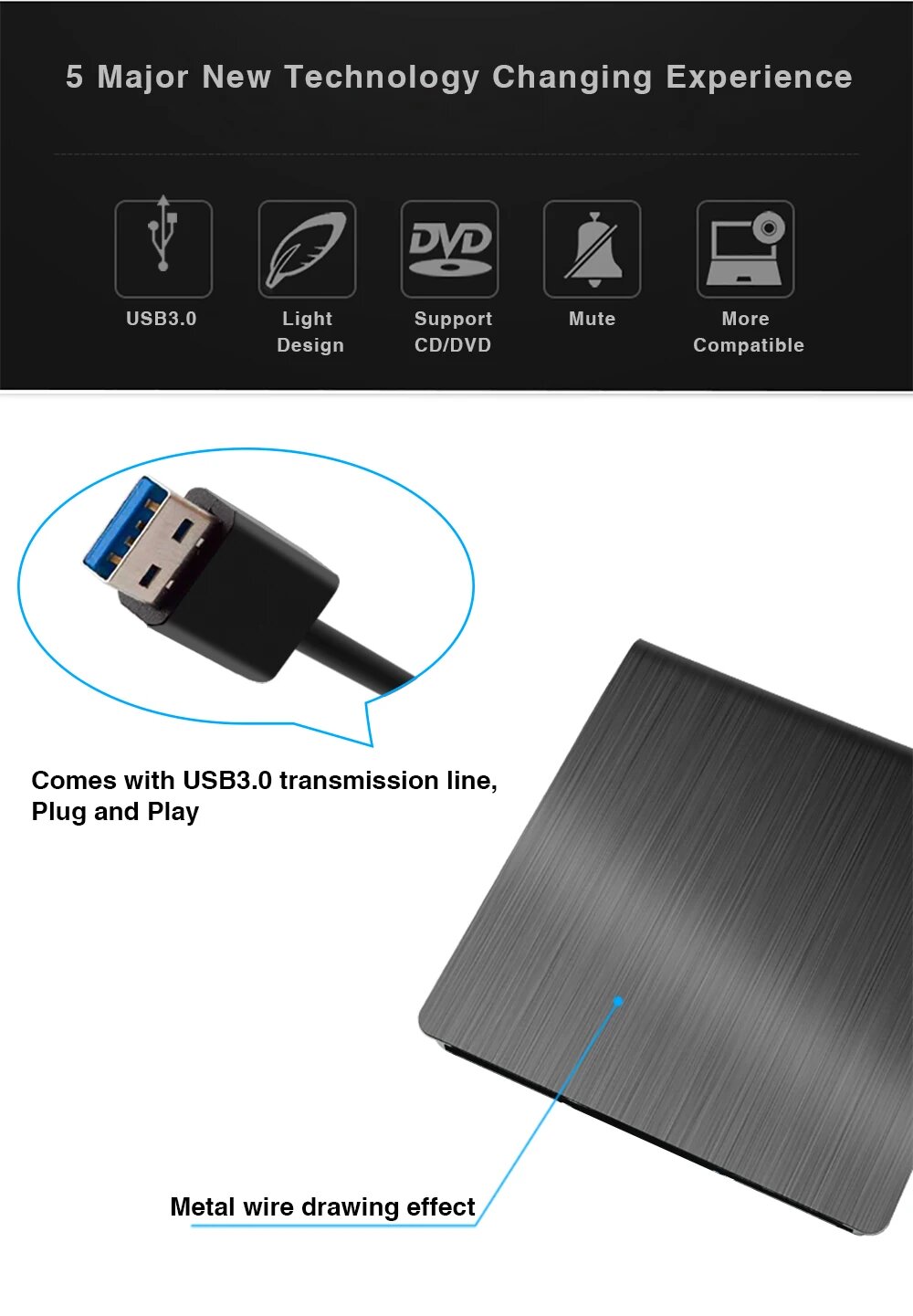 DeepFox ECD819-SU3-12,7 мм внешний DVD-корпус, White интересное: