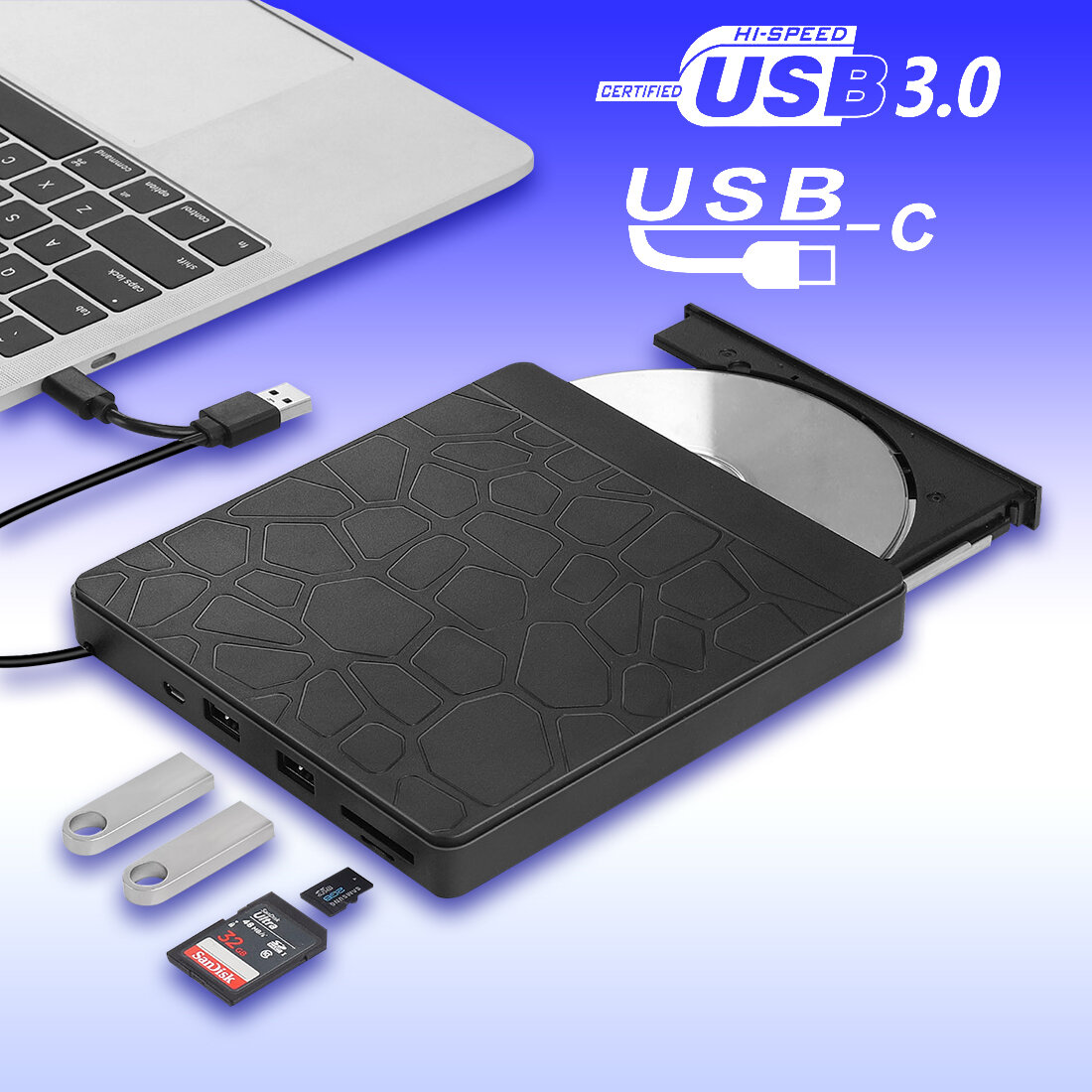 Купить 外置磁盘驱动器、USB Type C 适配器、USB 3.0 光驱、DVD 驱动器、DVD/USB/Micro USB/SD/TF 卡