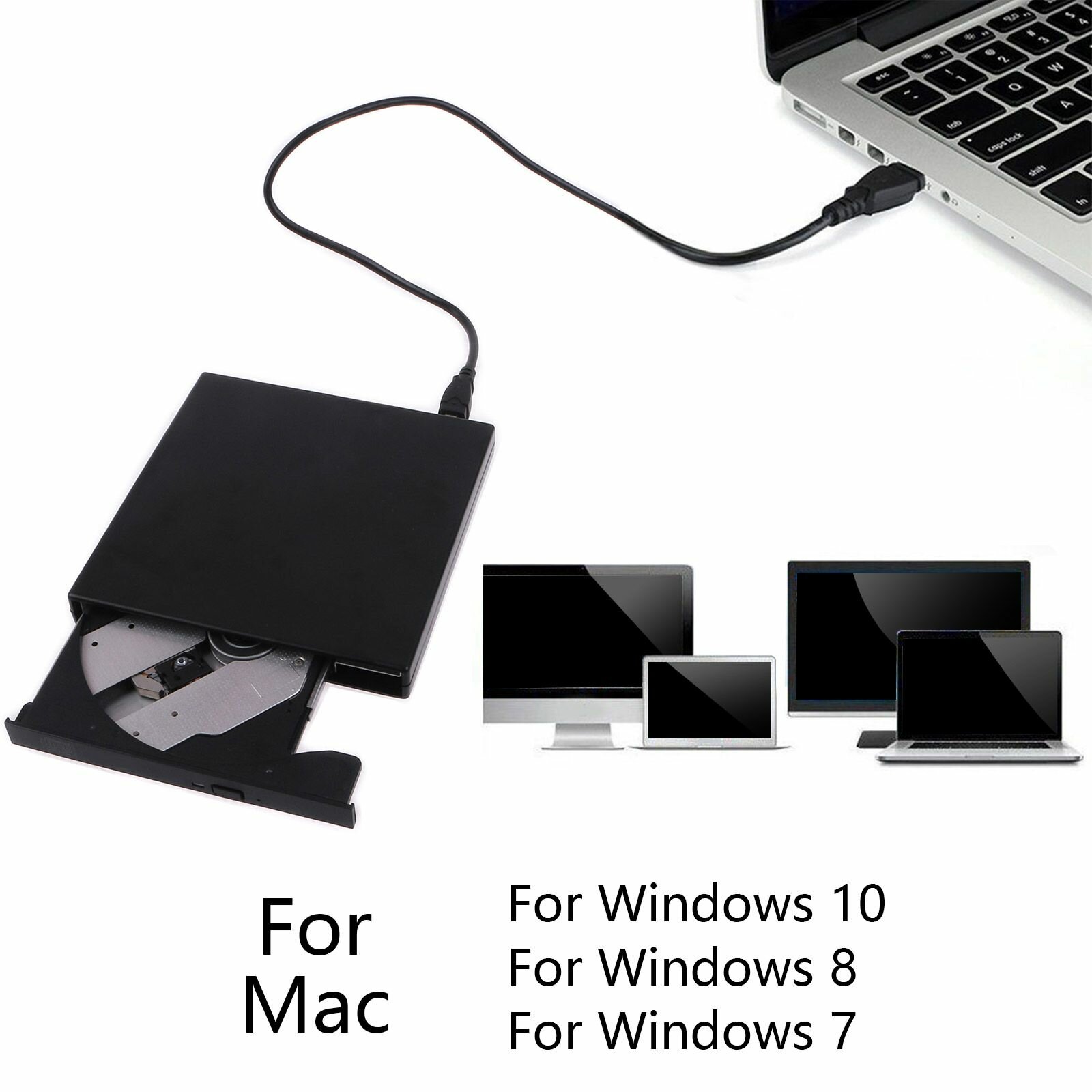 Купить Тонкий внешний оптический привод USB 2.0 DVD Combo ROM-проигрыватель CD-RW для записи с помощью Burner Writer