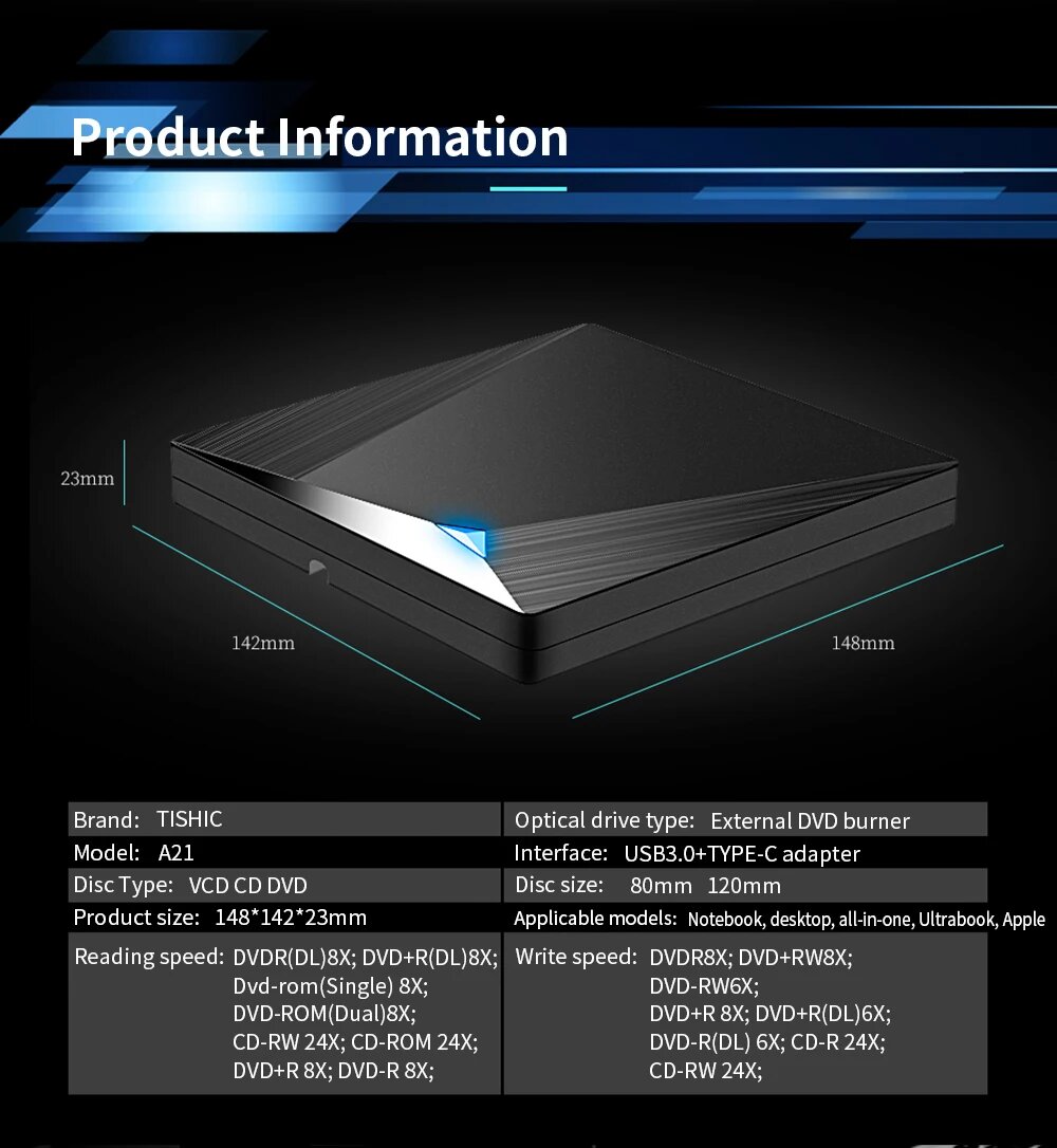 Купить TISHRIC Blu-Ray привод USB3.0, USB 3.0 Type C
