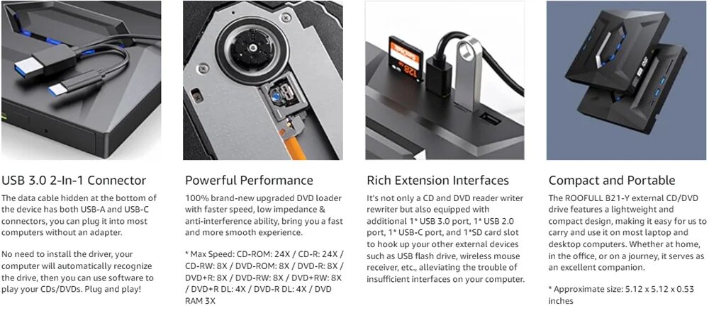 WAZNEY WAZ-DVDRW-HUB Внешний DVD-привод с концентратором USB, With Bag интересное:
